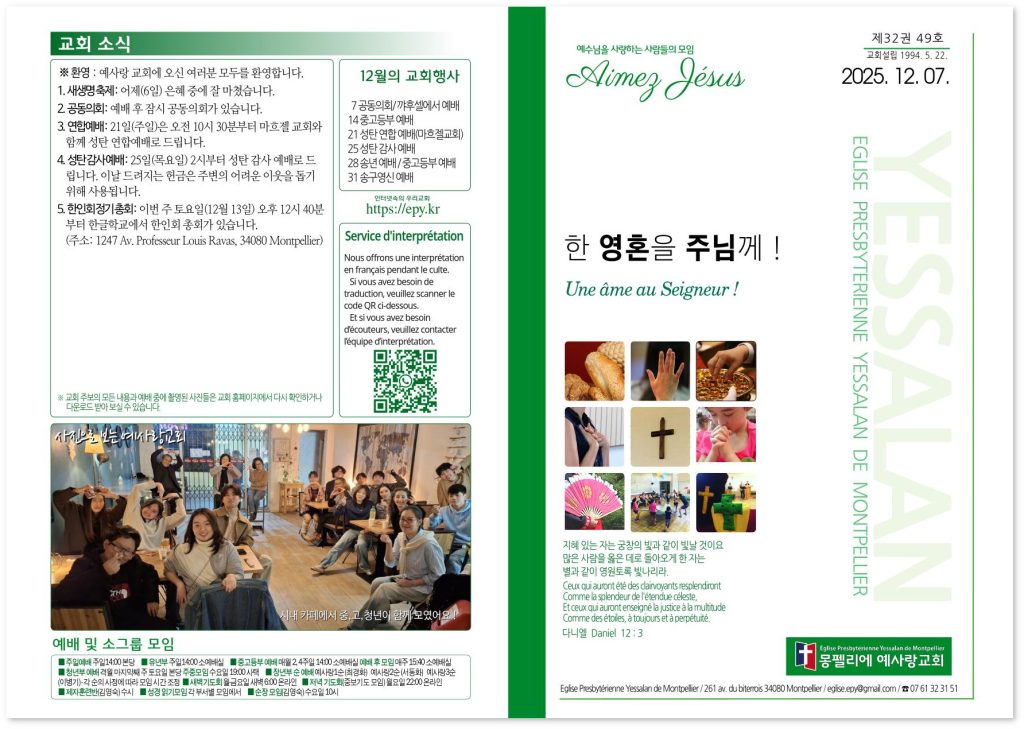 다음 주일 예배 장소 : 다음 주일(12월 7일) 예배는 꺄후셀(Le Carrousel)에서 모입니다. 시간은 동일합니다.꺄후셀 찾아오는 법 공동의회 예고 : 다음 주일 예배 후 ...