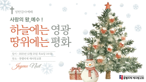 예수님께서 이땅에 오신 날을 기념하는 성탄절,올 해는 주제를, “사랑의 왕, 예수!”로 정하였습니다.우리를 사랑하여 이 땅에 오셨기에, 그 사랑을 배우고 그 분의 ...