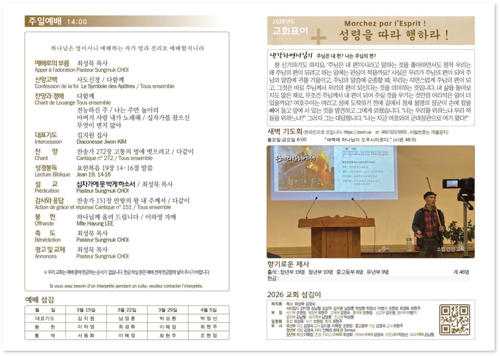 2026년 3월 15일 교회소식