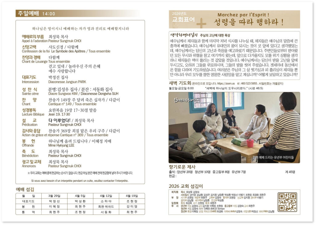 2026년 3월 29일 교회소식