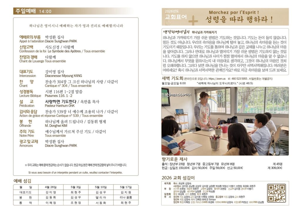 2026년 4월 26일 교회소식