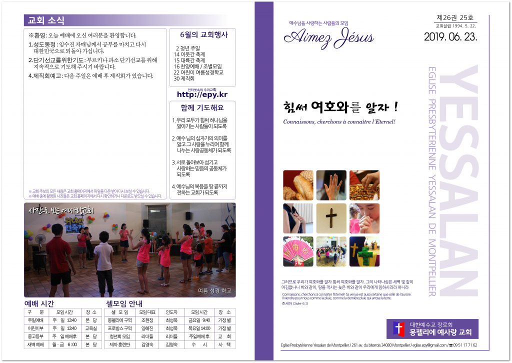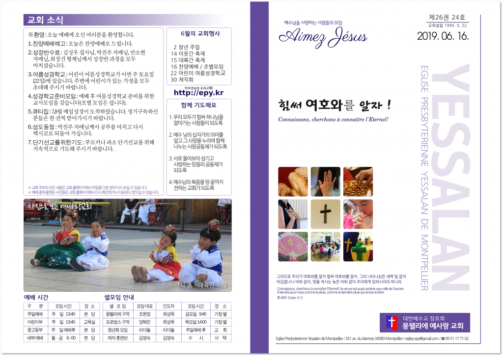 1. 찬양예배 예고 : 오늘은 찬양예배로 드립니다. 2. 성장반 수료 : 김성우 집사님, 박진주 자매님, 안소현 자매님, 최장건 형제님께서 성장반