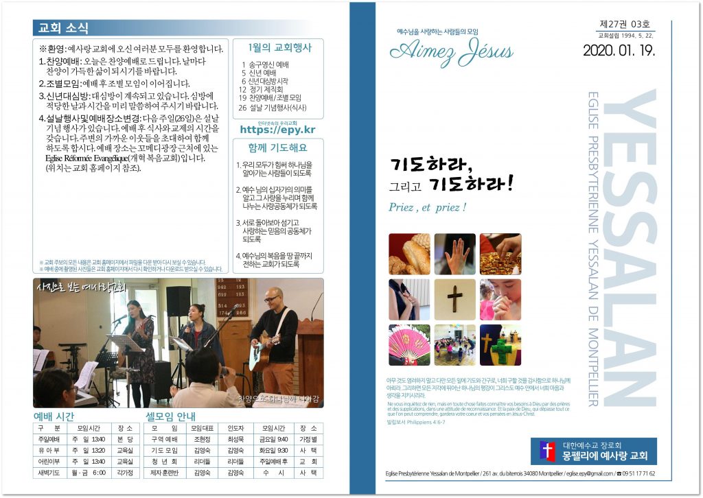 ※ 환영 :예사랑 교회에 오신 여러분 모두를 환영합니다. 1. 신년 대심방 :대심방이 계속되고 있습니다.아직 심방을 받지 못하신 분은 심방에 적당한