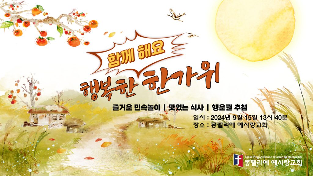 추석 나눔 : 오늘은 예배 후 이어서 추석 나눔 행사를 진행합니다. 서로 인사를 나누며 좋은 친교의 시간이 되시기를 바랍니다. 한복 […]