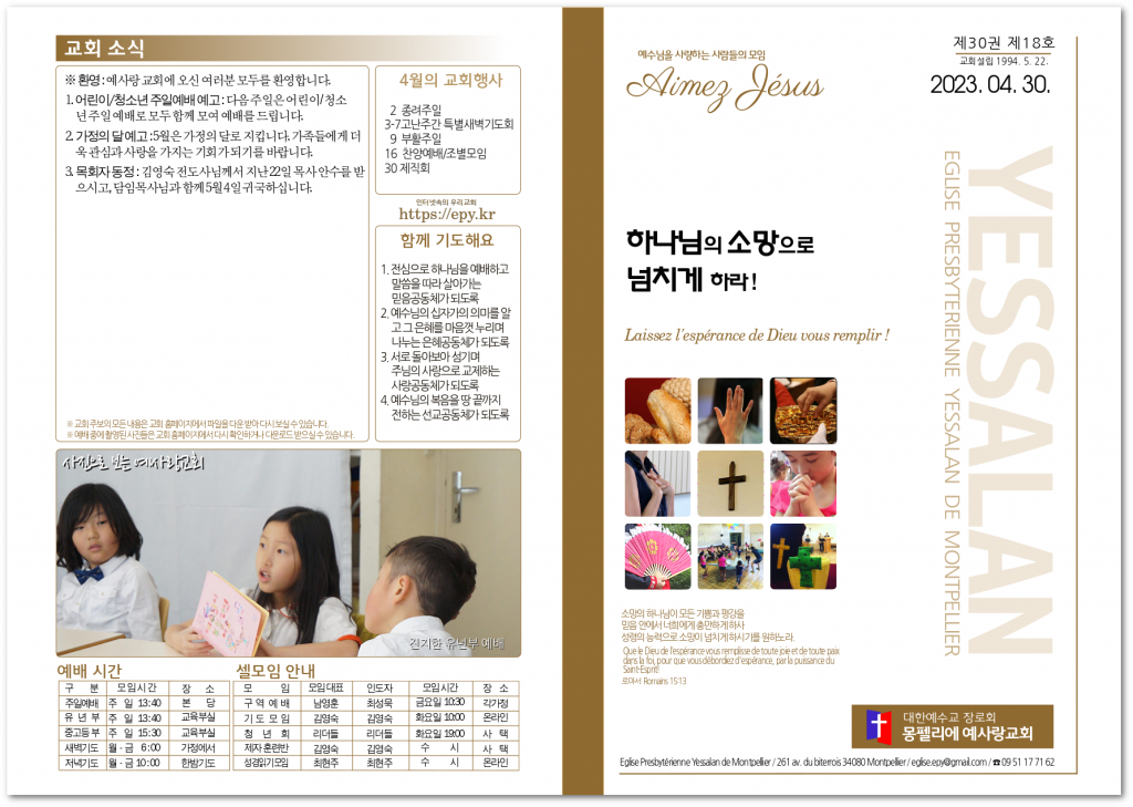 2023년 4월 30일 교회소식