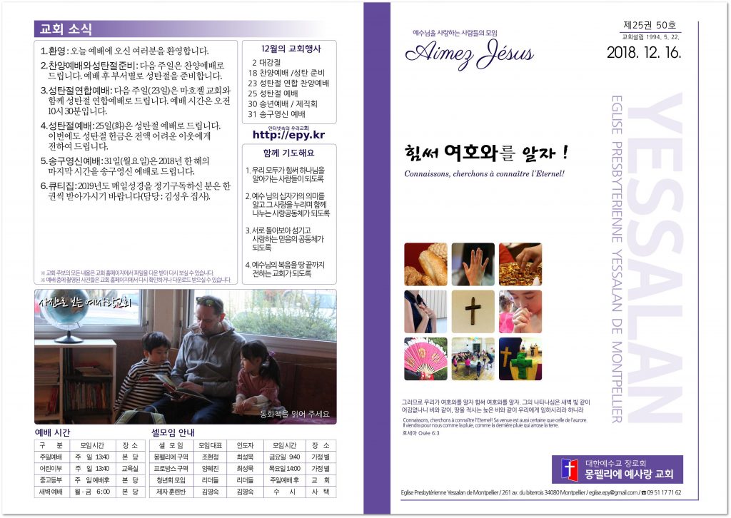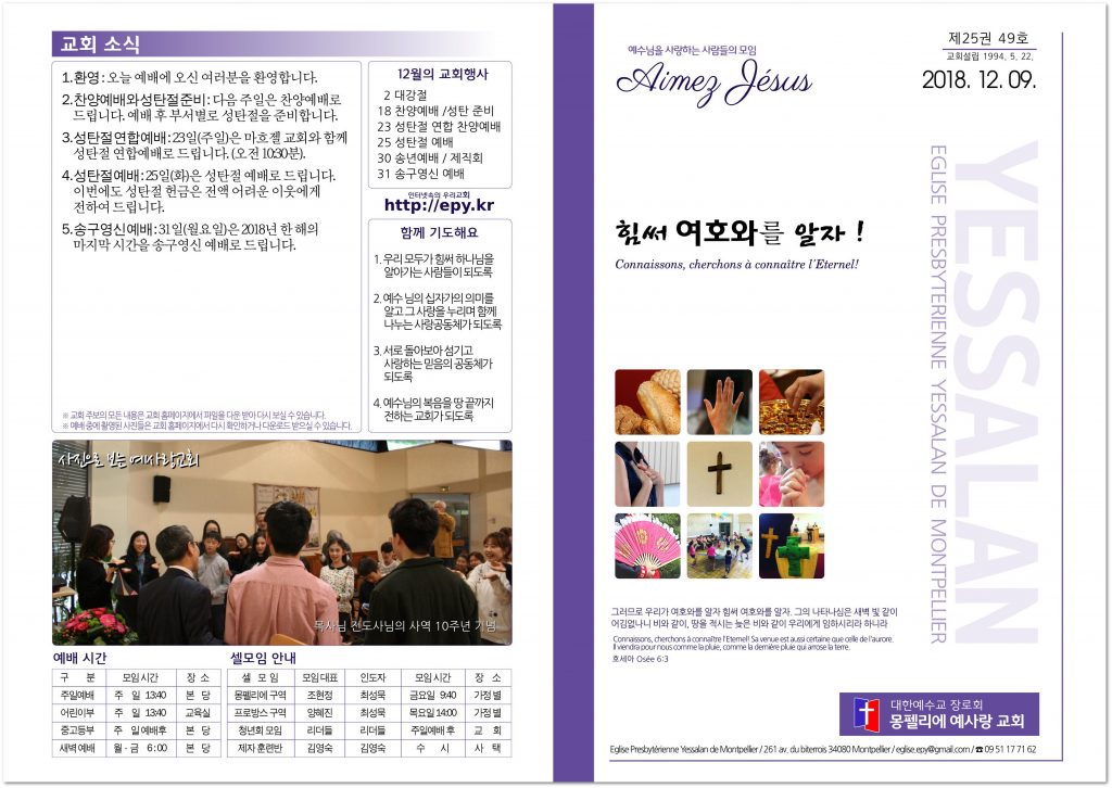 예사랑 가족 여러분, 12월 23일 예배는 프랑스 교회와 연합예배로 드립니다.예배 시간이 평소와 달리 오전 10시 30분이라는 점 잊지 마시기 바랍니다.