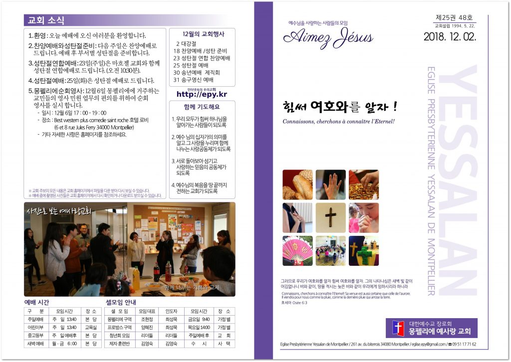 2018년 12월 9일 교회소식