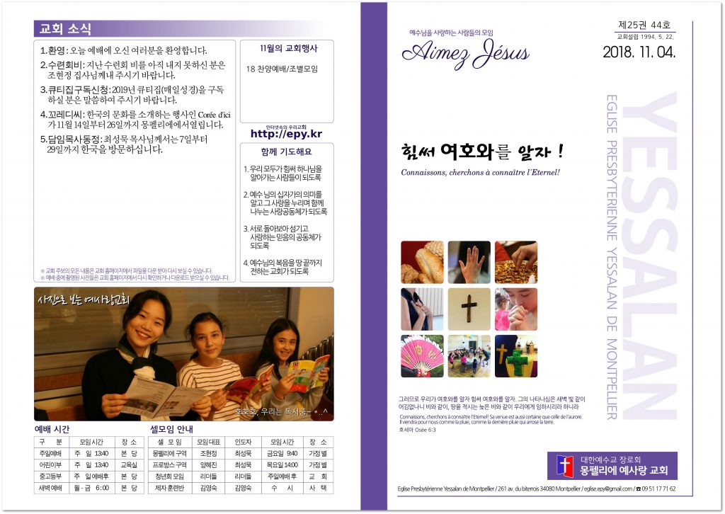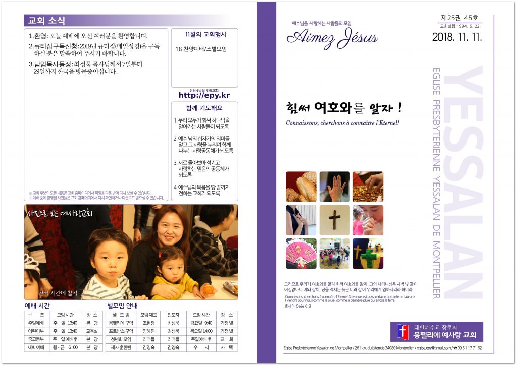 1. 환영 오늘 예배에 오신 여러분을 환영합니다. 2. 큐티집 구독신청 2019년 큐티집(매일성경)을 구독 하실 분은 말씀하여 주시기 바랍니다. 3.담임목사 동정