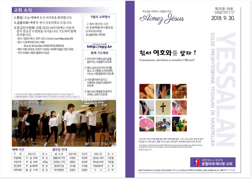 교회소식2018년 9월 30일 교회소식 / 30/09/2018 1. 환영 오늘 예배에 오신 여러분을 환영합니다. 2. 공동의회 예배 후 잠시 공동의회로 모입니다. 3. 전교인 수련회 10월 12(금)-14(주일)에는 다음과
