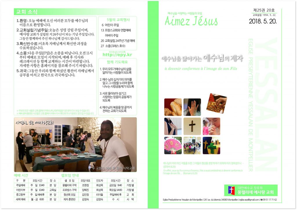 1. 환영 오늘 예배에 오신 여러분 모두를 예수님의 이름으로 환영합니다. 2. 교회설립 기념주일 오늘은 성령 강림 주일이며, 예사랑 교회가 설립된