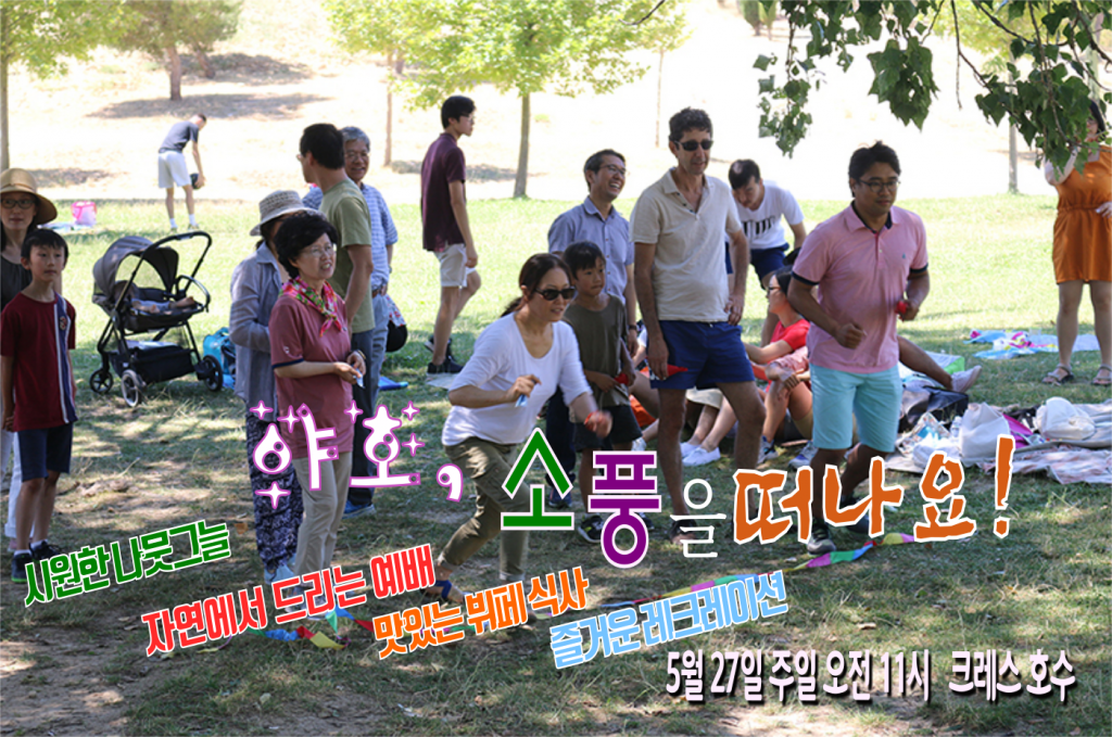 다음 주일(5월 27일)은 교회 온 가족이 함께 크레스 호수로 소풍을 갑니다. 모처럼 함께 밖으로 나가 야외예배도 드리고, 맛있는 음식도 먹고,