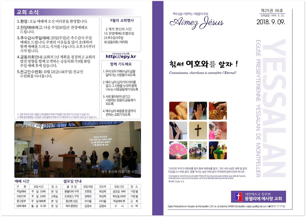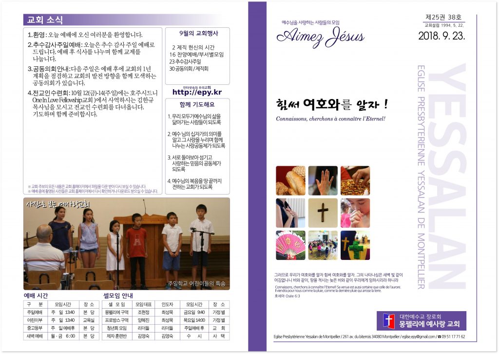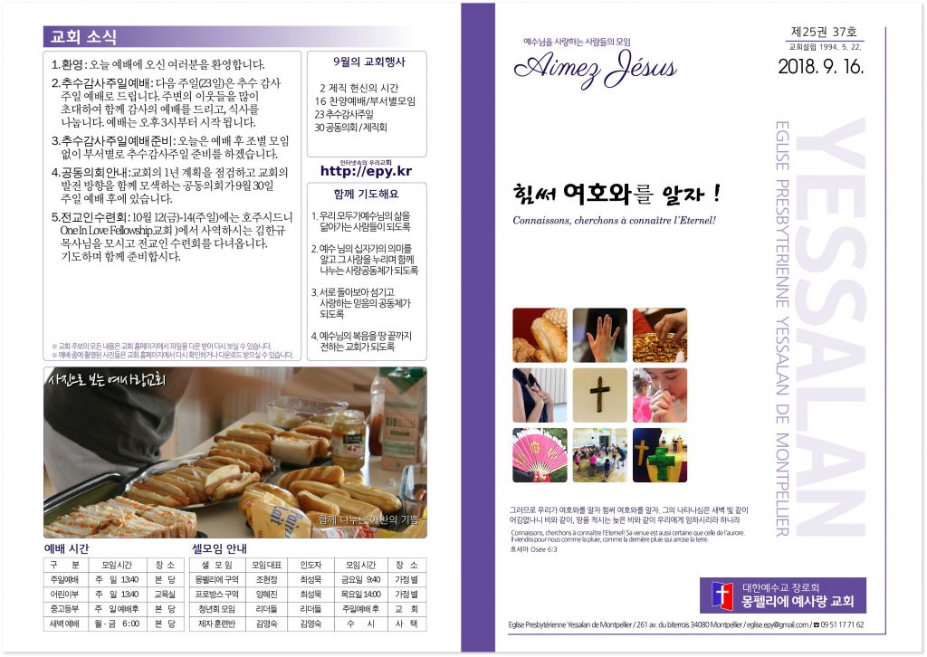 2018년 9월 16일 교회소식