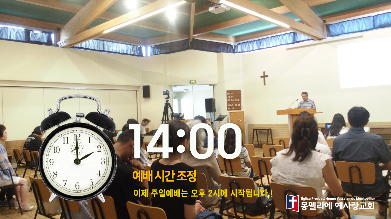 저희 교회는 9월 5일부터 예배 시간이 오후 2시로 변경됩니다.