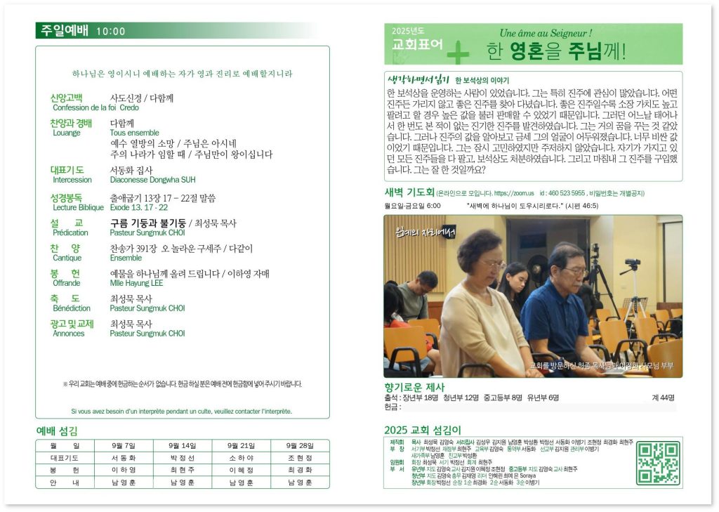 2025년 9월 7일 교회소식