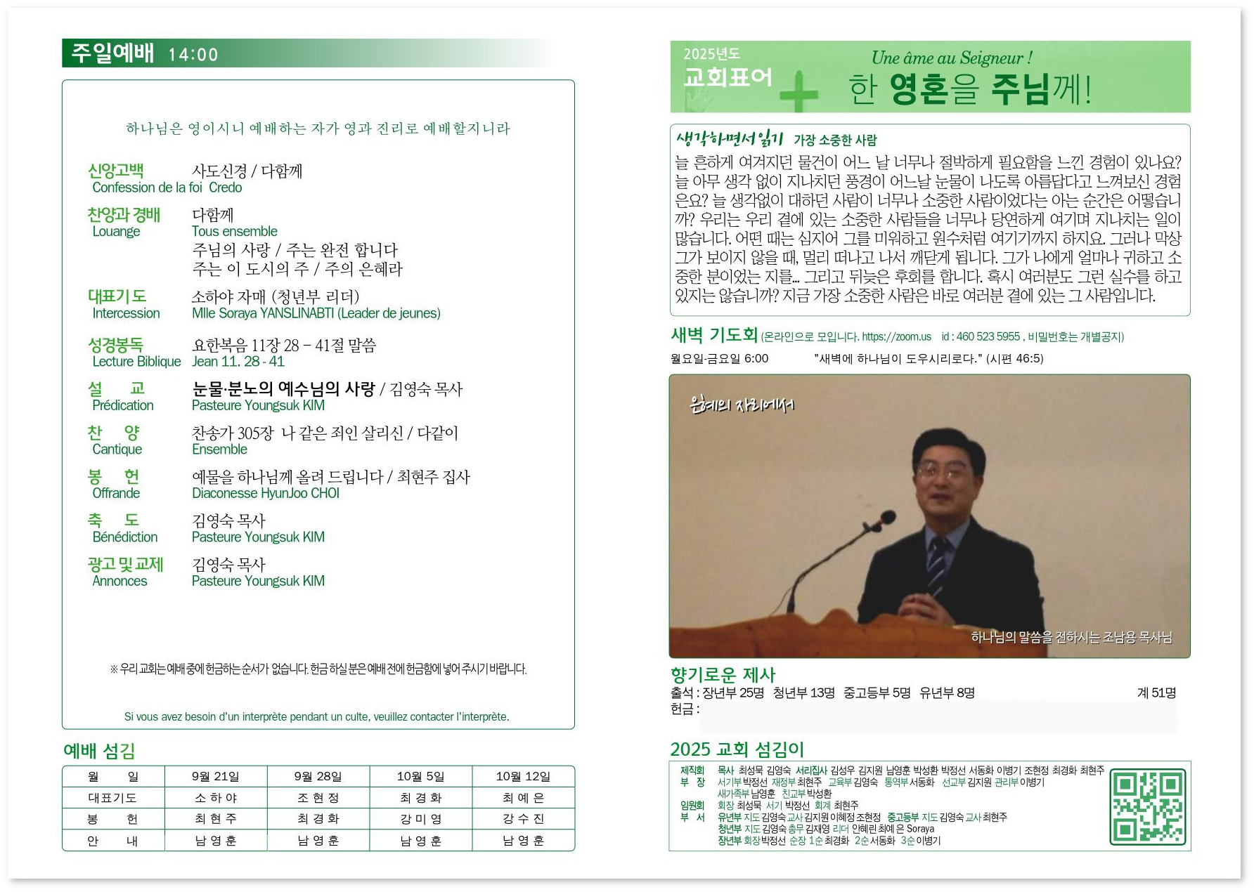 2025년 9월 21일 교회소식