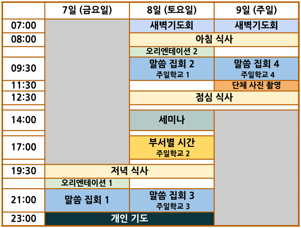경제적으로 어려워 수련회 참가를 망설이시는 분이 계시면 개별적으로 미리 말씀해 주세요.)