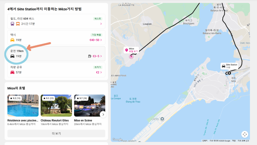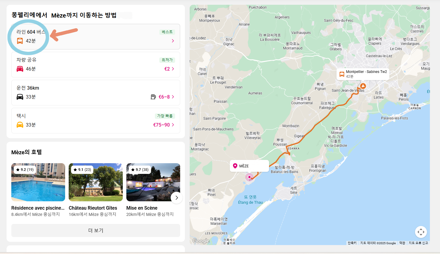 몽펠리에에서 메즈까지는 버스로 42분 정도 걸리며,