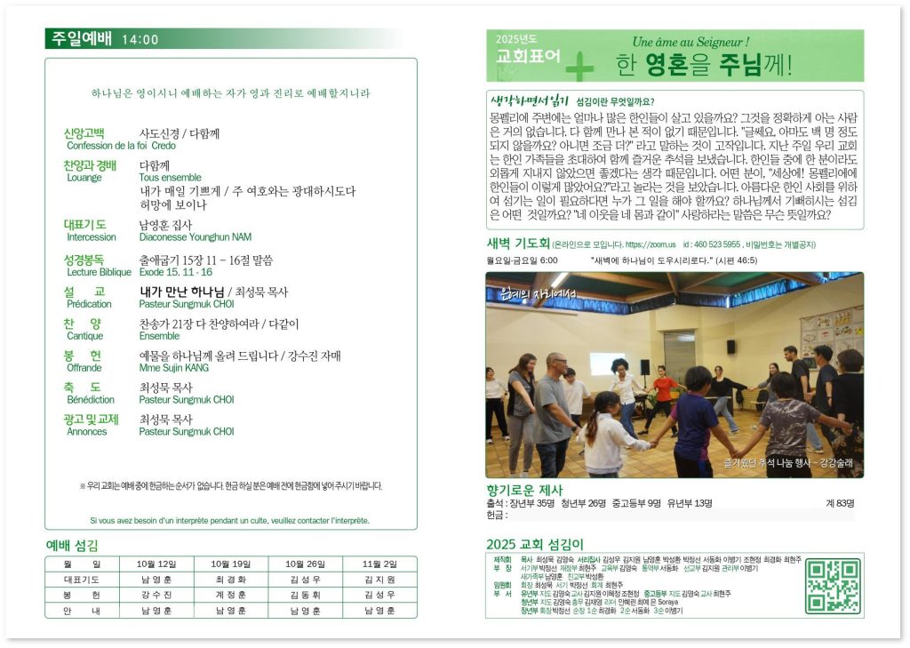 2025년 10월 12일 교회소식