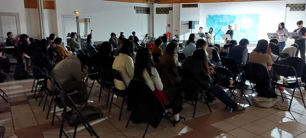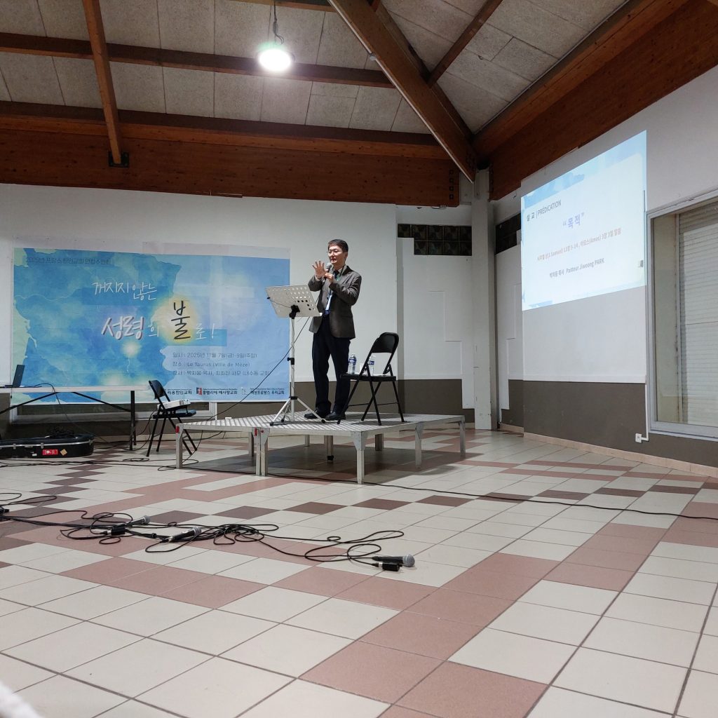 2025년 11월 7일 프랑스 한인교회 연합수련회 (2) By 예사랑13/11/202520/11/2025교회앨범 수련회 첫째 날, 세 교회가 함께 모였습니다.멀리 리옹에서, 엑상프로방스에서 오셔서 함께 했습니다.함께 맛있는 식사를 나누고 드디어 집회가 시작되었습니다. 조회수 : 43