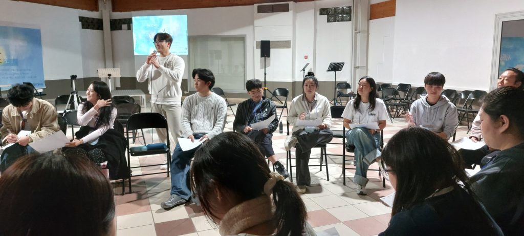 2025년 11월 8일 프랑스 한인교회 연합수련회 (3) By 예사랑14/11/202520/11/2025교회앨범 유년부는 유년부끼리, 중등부는 중등부끼리, 청년부는 청년부끼리, 함께 행복한 교제의 시간을 가졌습니다. 같은 또래들끼리 시간 가는 줄 모르고 행복한 시간 보냈습니다. 조회수 : 52