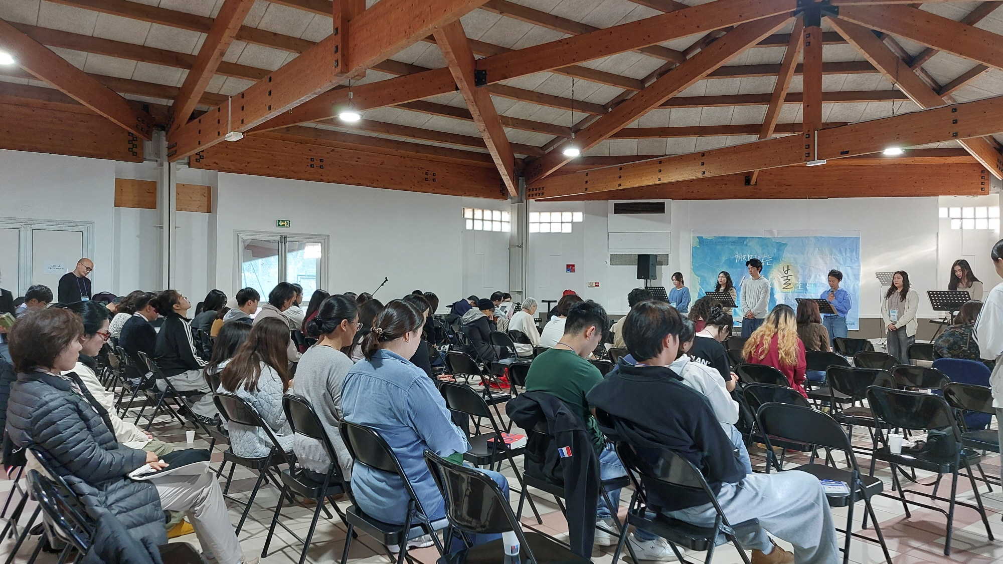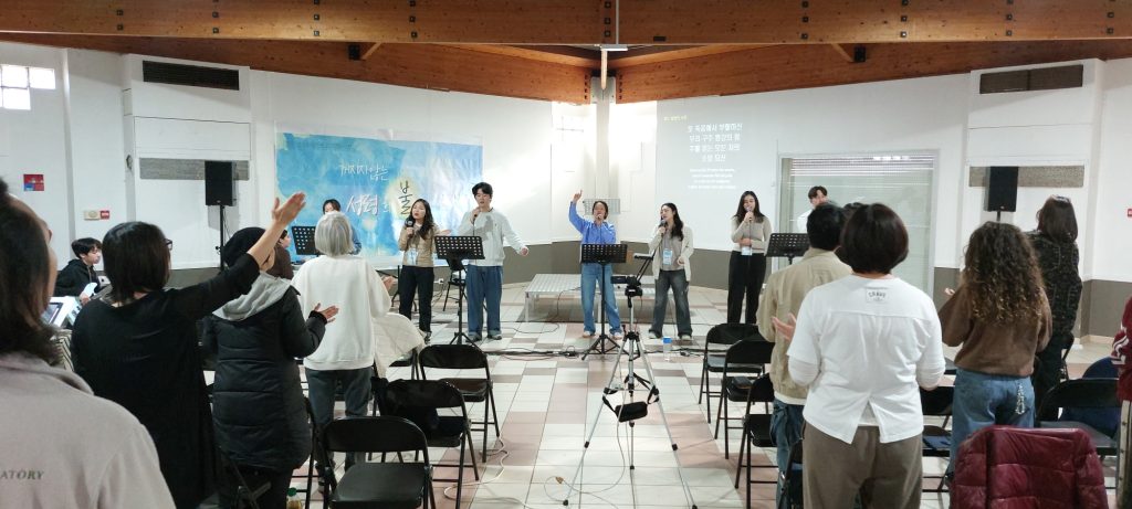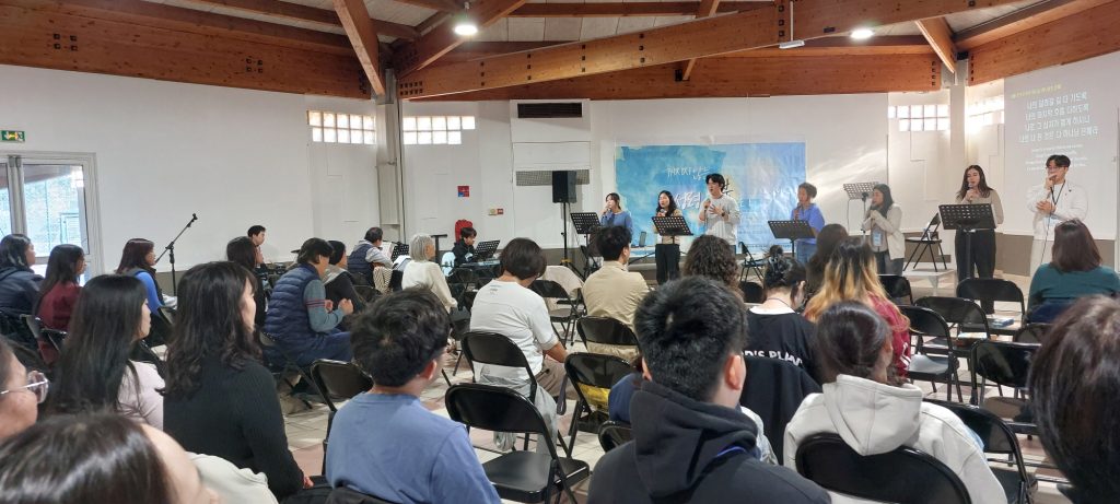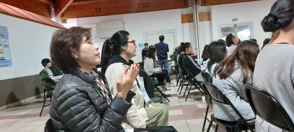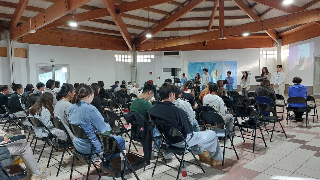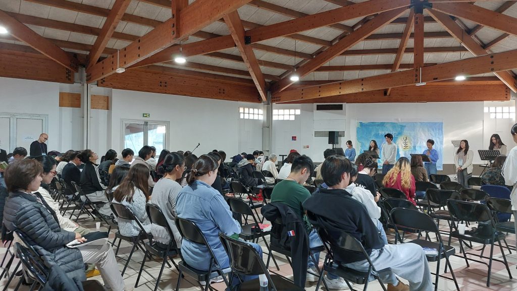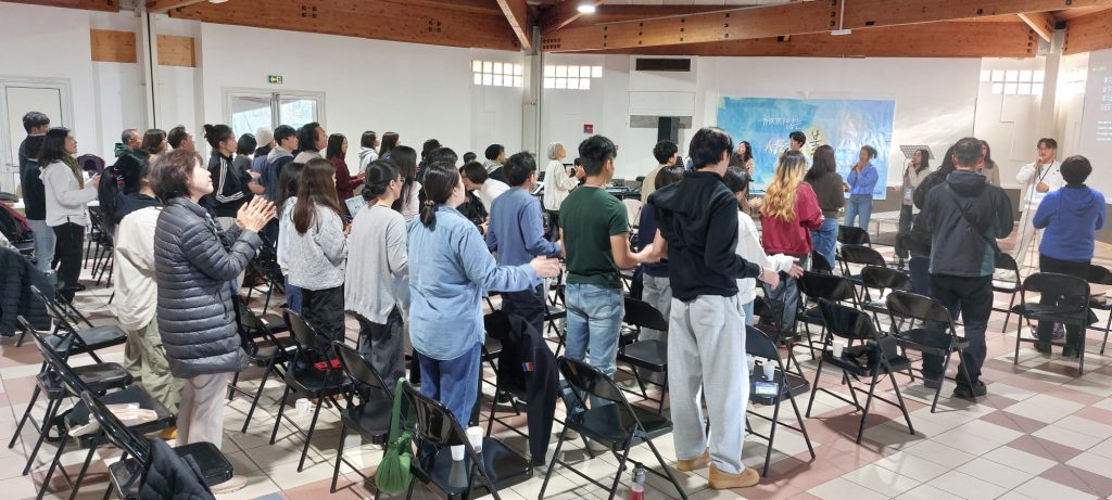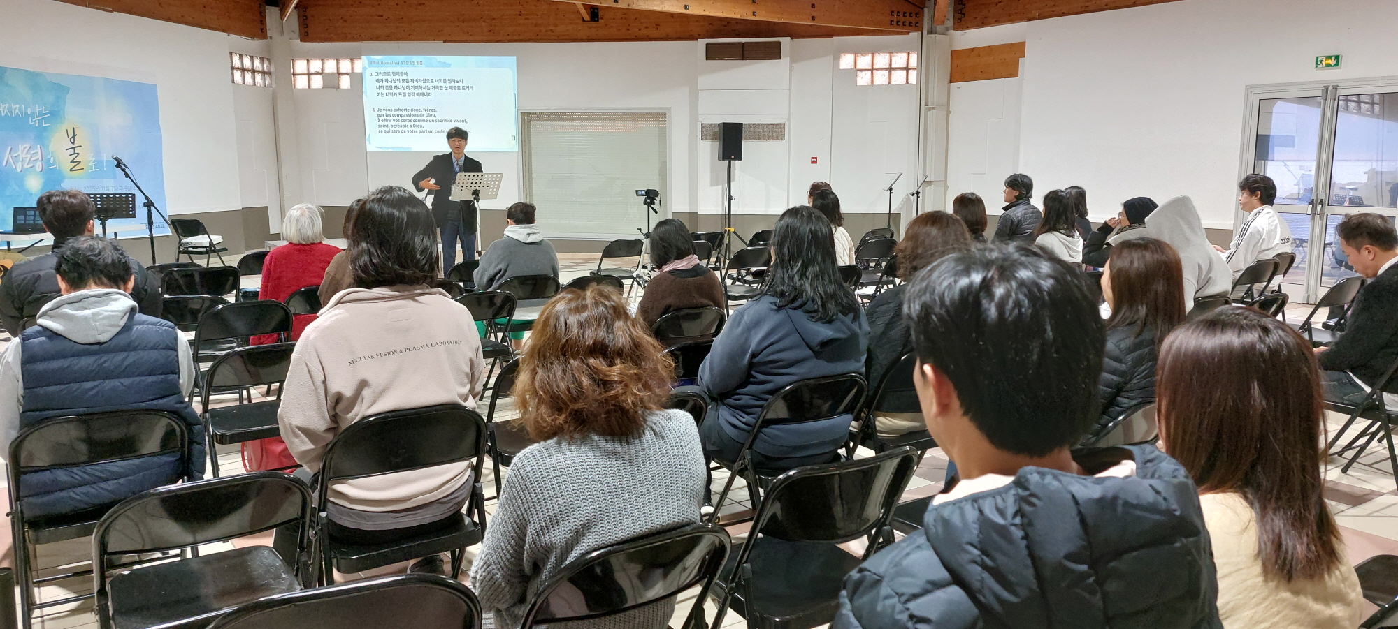 2025년 11월 8일 프랑스 한인교회 연합수련회 (4) By 예사랑14/11/202520/11/2025교회앨범 둘째 날, 아름다운 하루가 열렸습니다. 아름다운 하늘 아래 은혜를 사모하는 사람들이 함께 모여 함께 먹고, 함께 자며 오직 말씀에 집중하던 시간, 우리 모두 하나님의 말씀 속에 푹 빠져 하루를 보냈습니다. 조회수 : 39