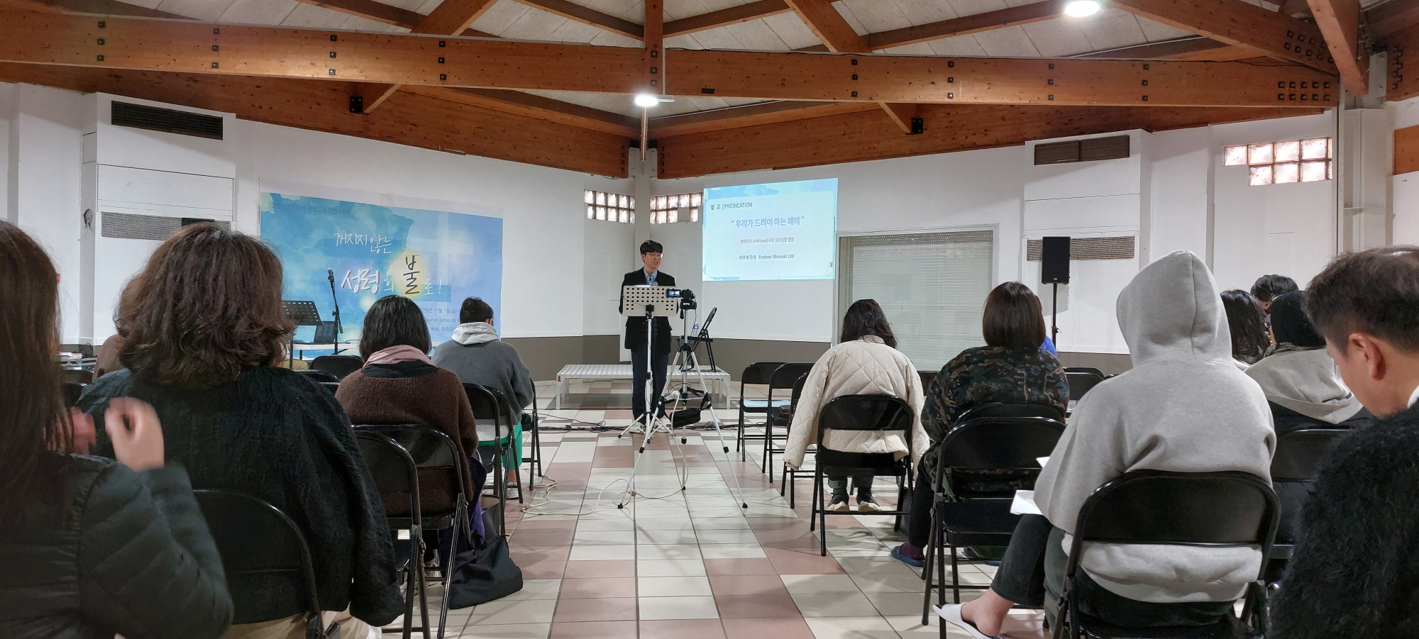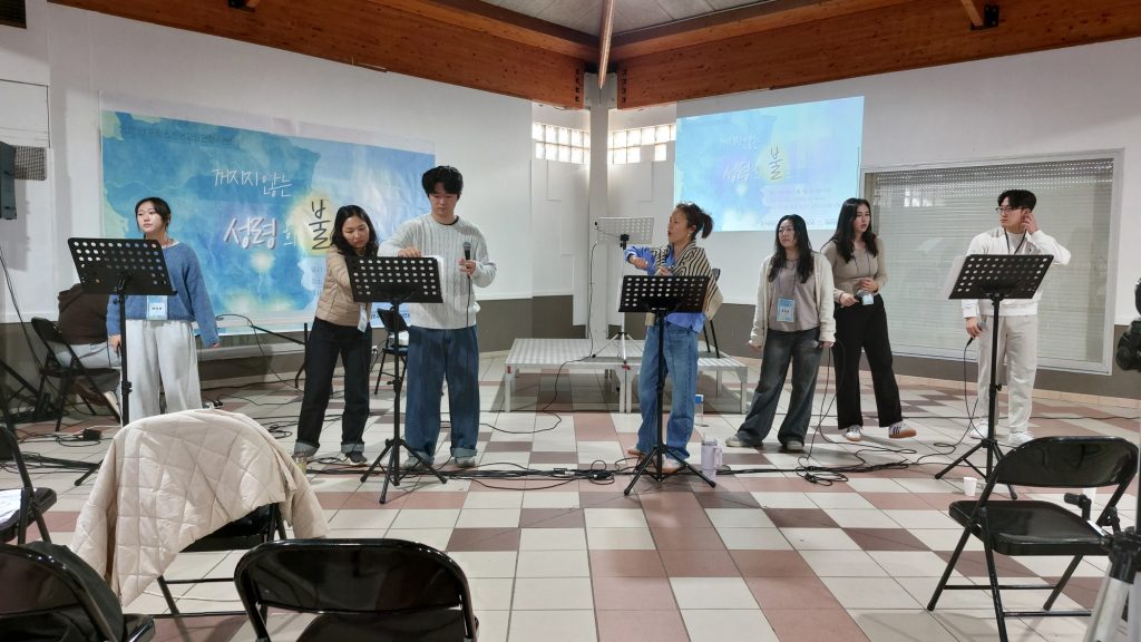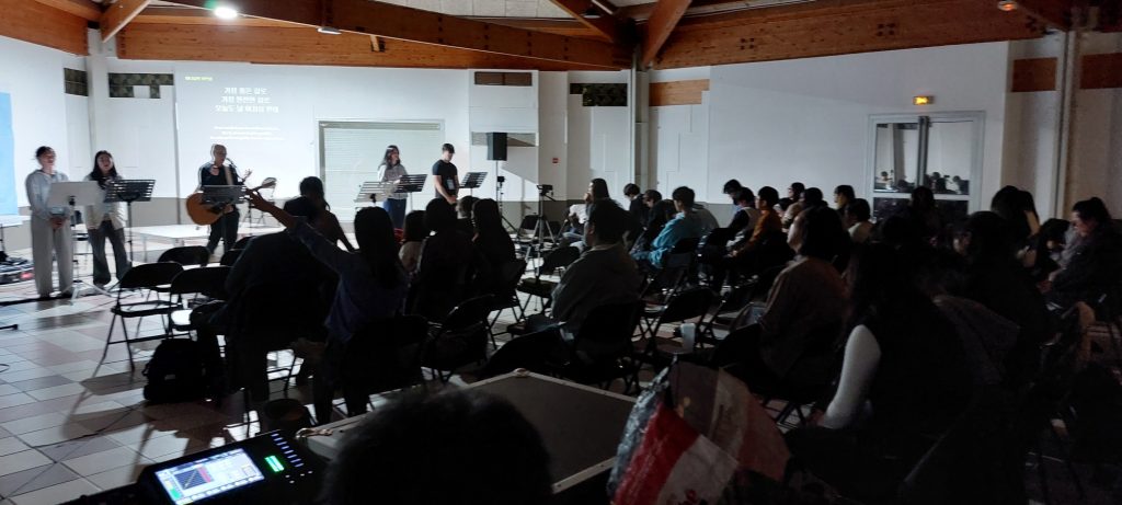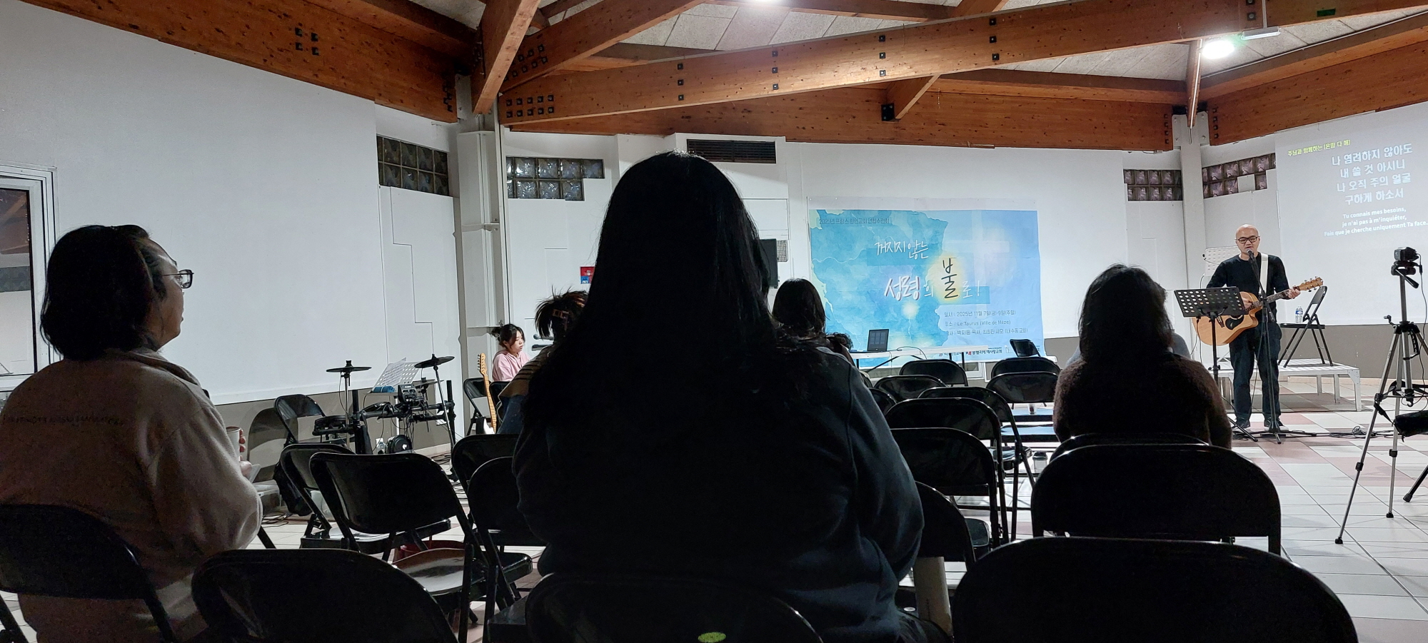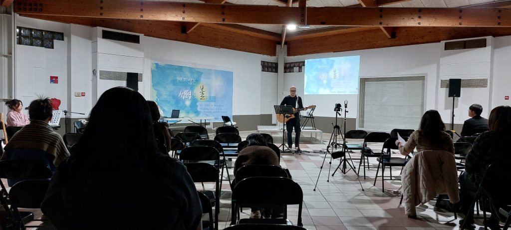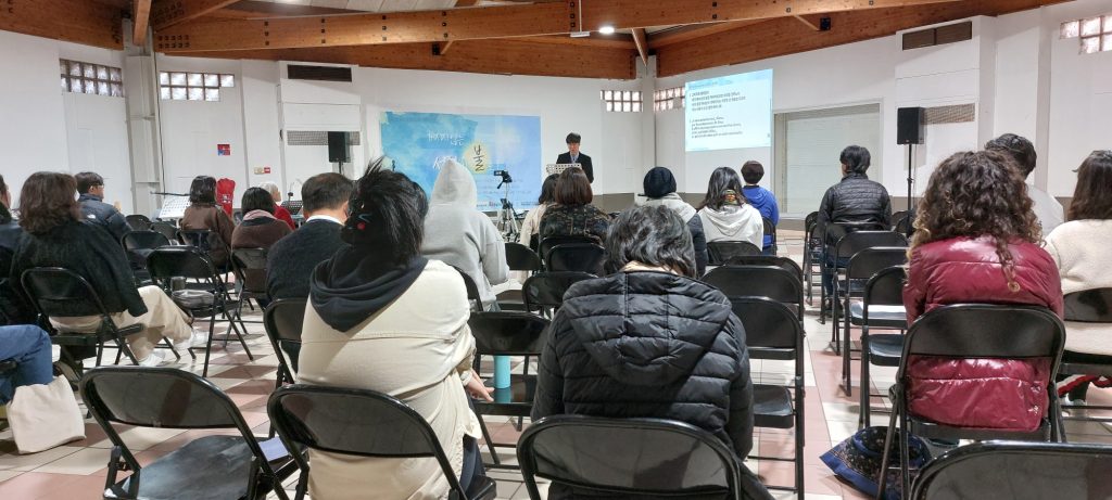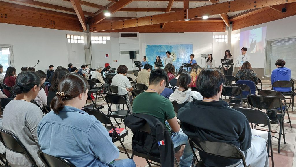2025년 11월 8일 프랑스 한인교회 연합수련회 (4) By 예사랑14/11/202520/11/2025교회앨범 둘째 날, 아름다운 하루가 열렸습니다. 아름다운 하늘 아래 은혜를 사모하는 사람들이 함께 모여 함께 먹고, 함께 자며 오직 말씀에 집중하던 시간, 우리 모두 하나님의 말씀 속에 푹 빠져 하루를 보냈습니다. 조회수 : 39