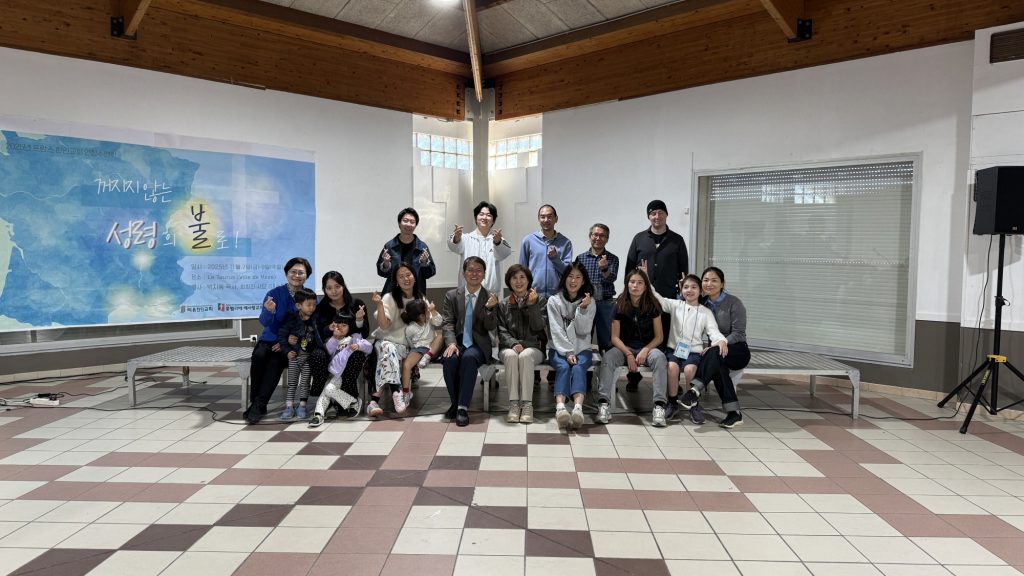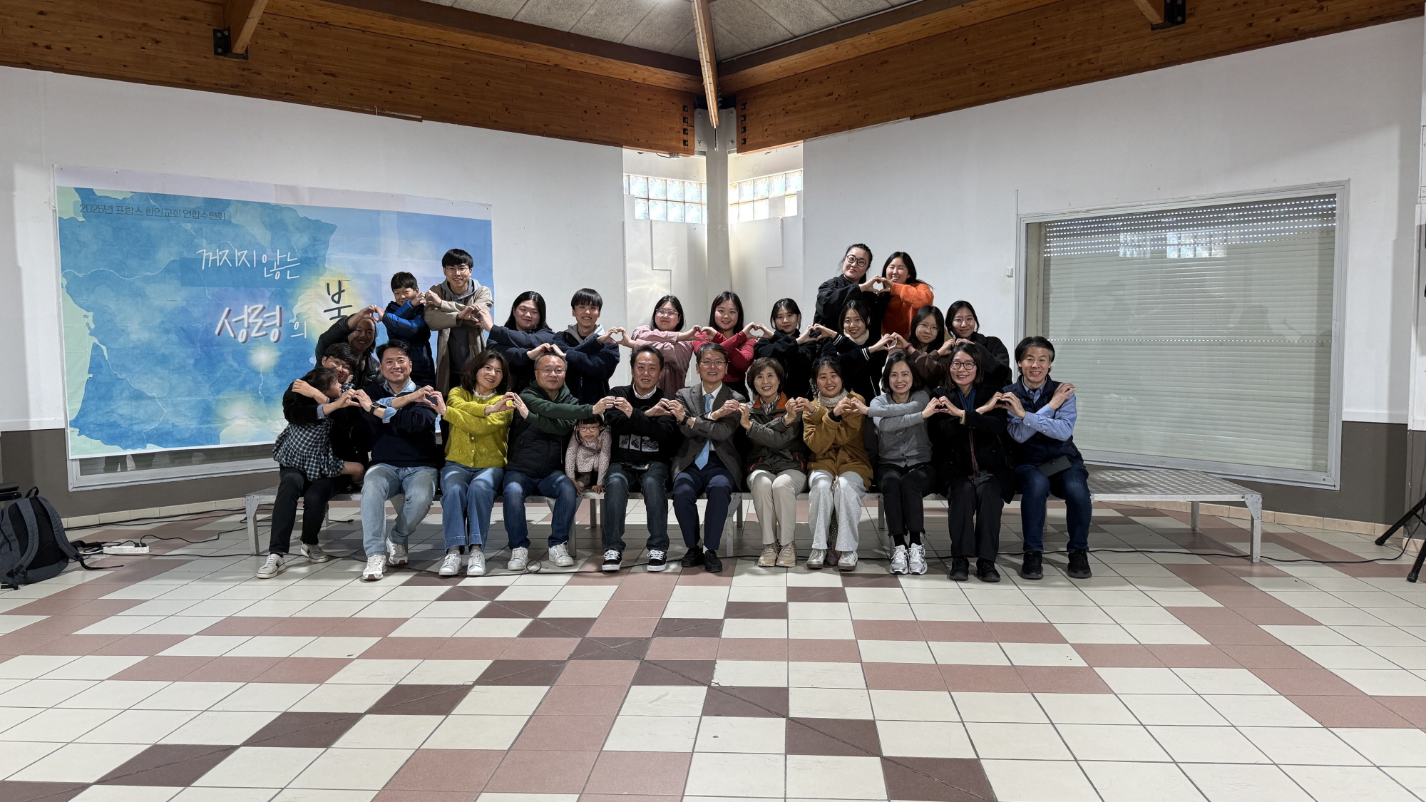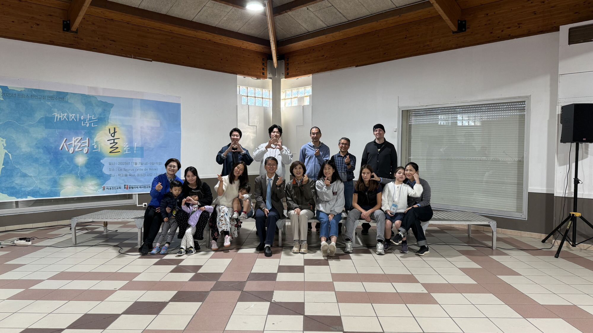2025년 11월 9일 프랑스 한인교회 연합수련회 (9) By 예사랑20/11/202521/11/2025교회앨범 은혜로운 연합수련회를 마치고 기념 사진들을 찍었습니다. 너무 빠르게 지나간 2박 3일이 아쉬웠던 시간, 벌써 내년 수련회가 기다려 진다는 분도 계셨죠.모두들 내년에 다시 만나요~ 조회수 : 48