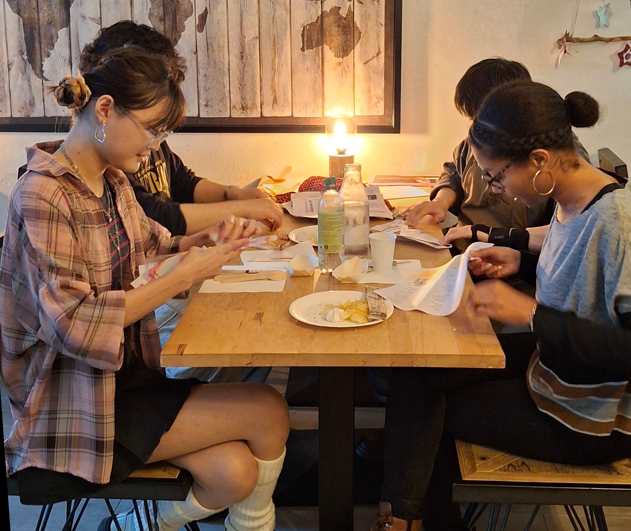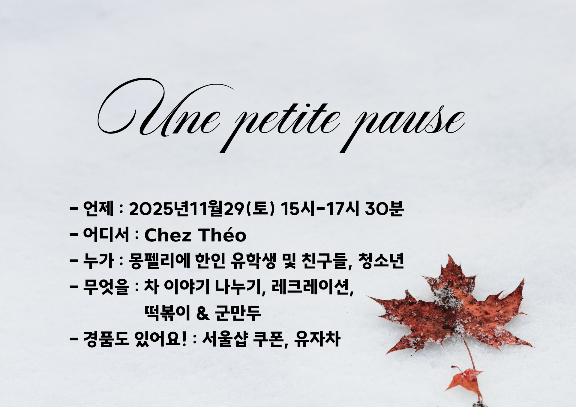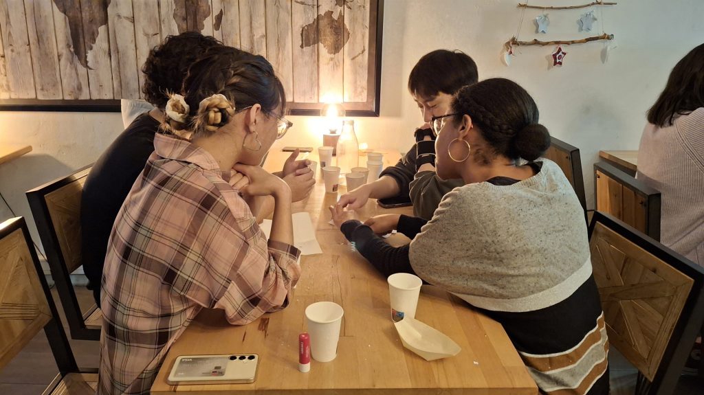 2025년 11월 29일 중,고,청년 카페 모임: Une Petite pause By 예사랑30/11/202501/12/2025교회앨범 중등부 고등부 청년부가 함께 뭉쳤어요.시내 카페에서 만나 함께 차를 마시며, 이야기도 나누고, 게임도 하고, 떢볶이 타임도 가졌죠.너무 오붓한 우리들만의 시간, 너무 행복했어요 !!!조만간에 다음에 또 만나요! ^^ 조회수 : 30