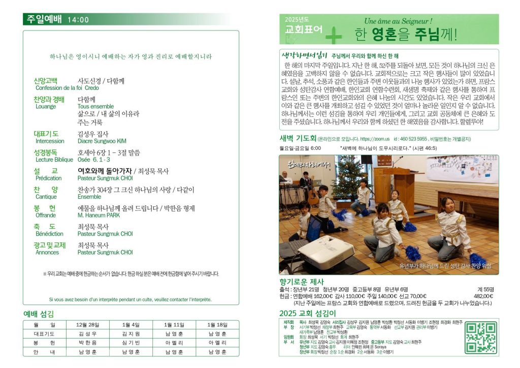 2025년 12월 28일 교회소식