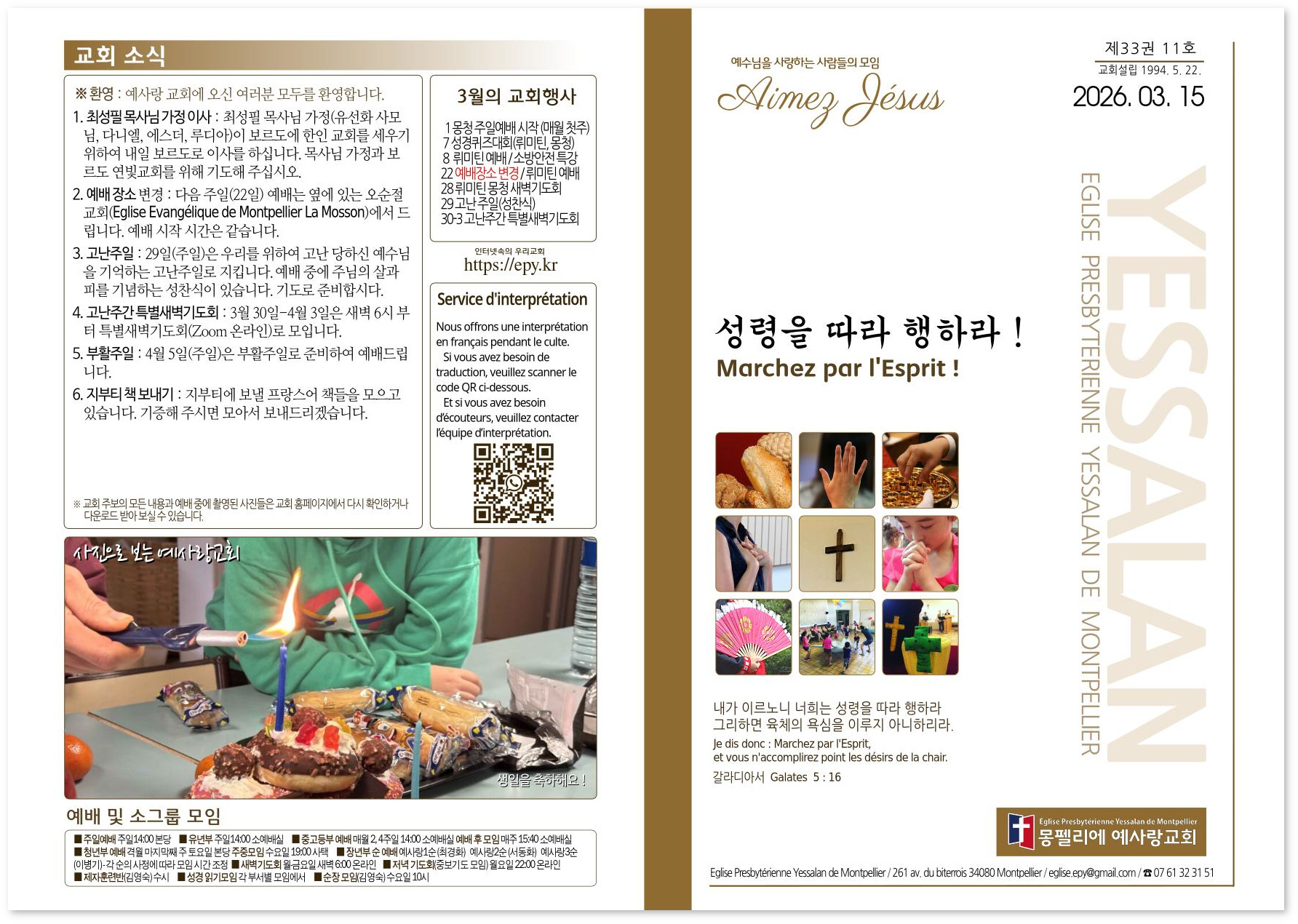 2026년 3월 15일 교회주보